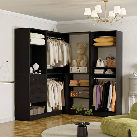 Closet System with Drawers, Hanging Rods and Corner, 86'', 3 Packs