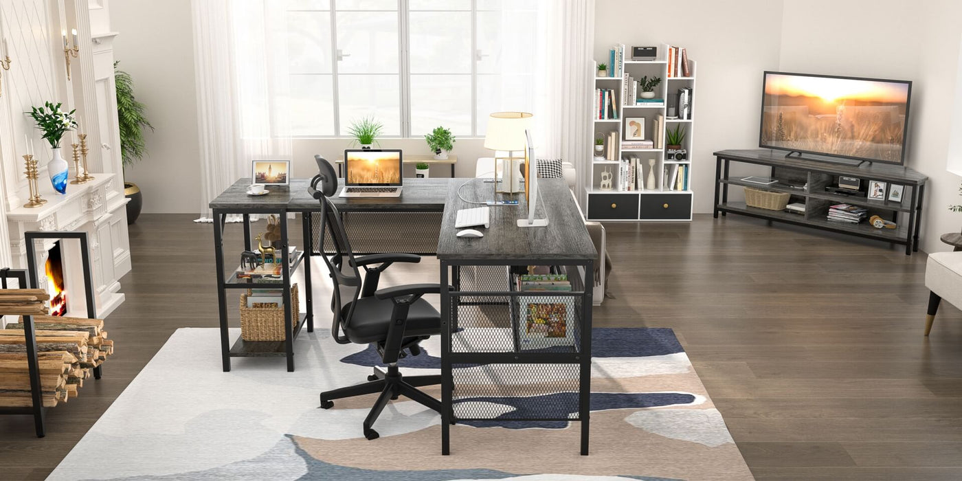 63 Inch Computer Desk, Large Rectangular Sturdy Office Desk, Premium 2 Person Long Desk