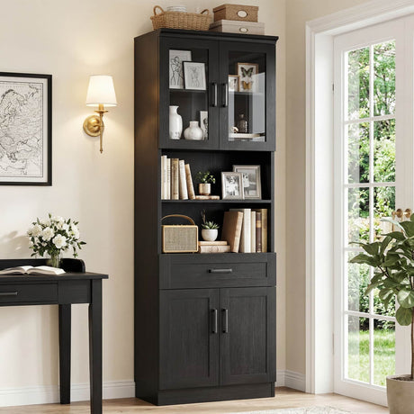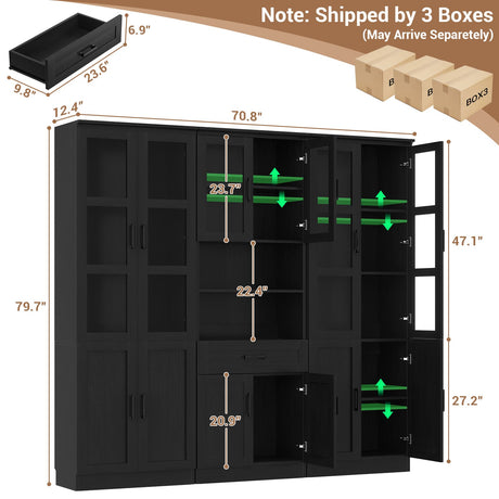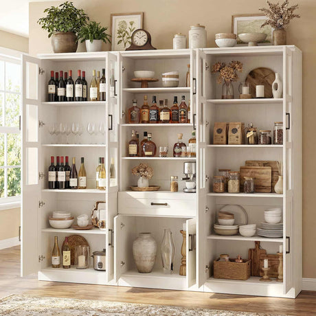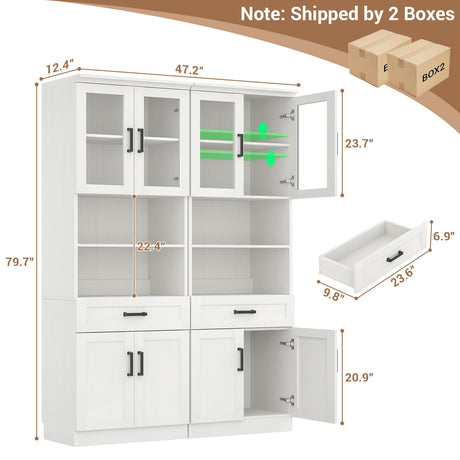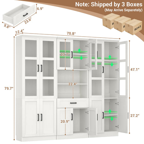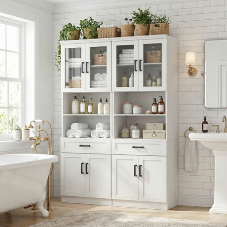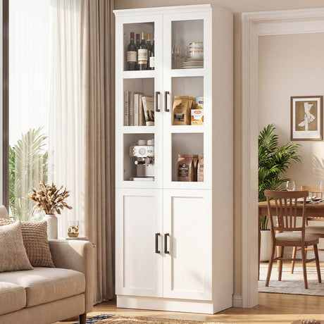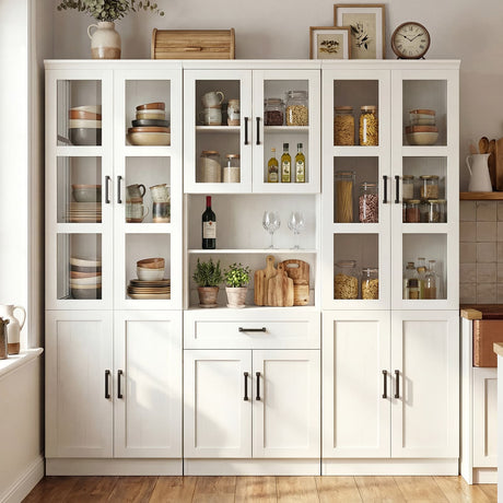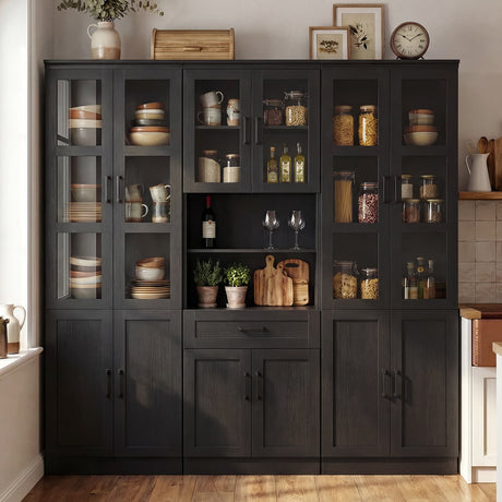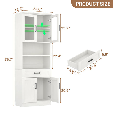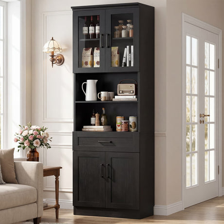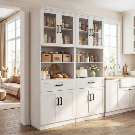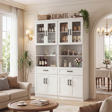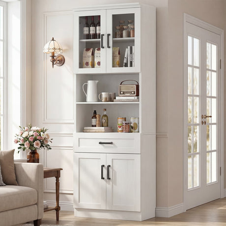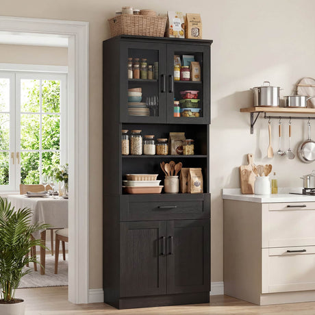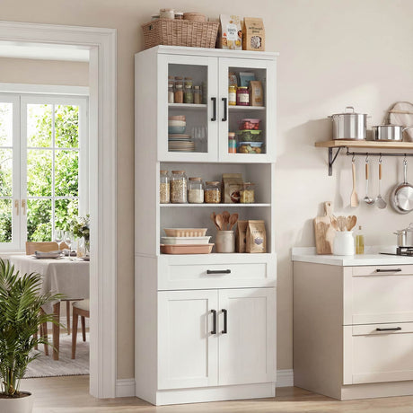 72'' Tall Modern Pantry Cabinet with 2 Drawers and Grid Storage