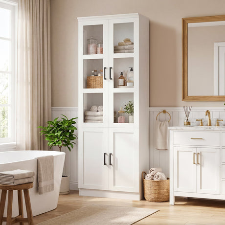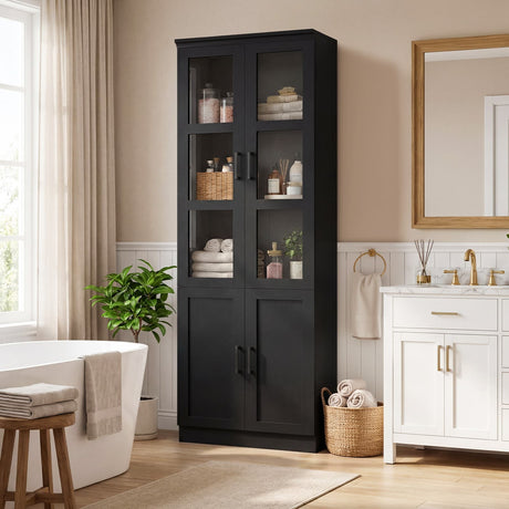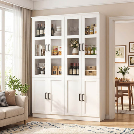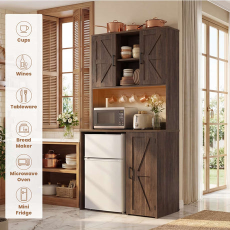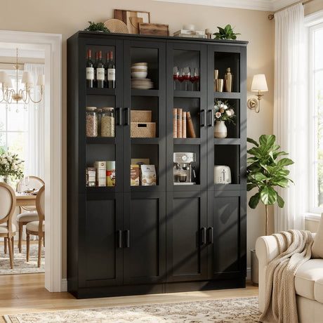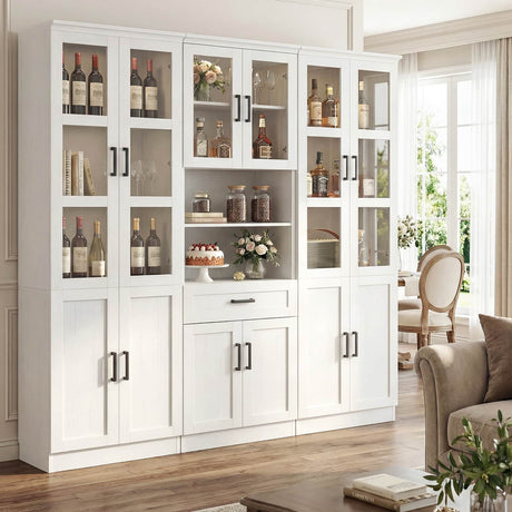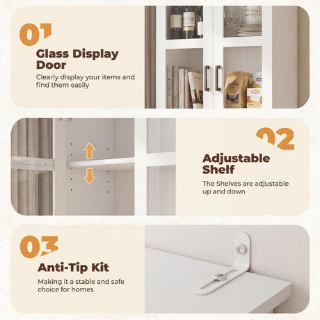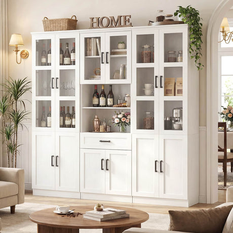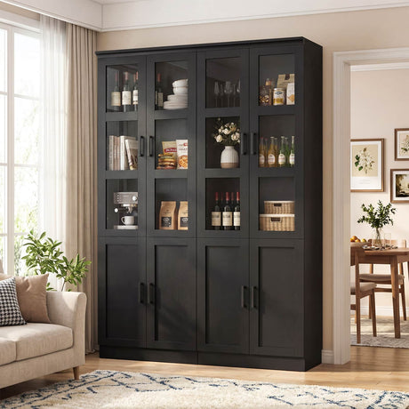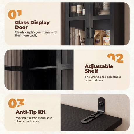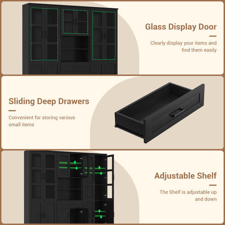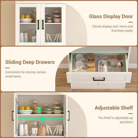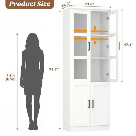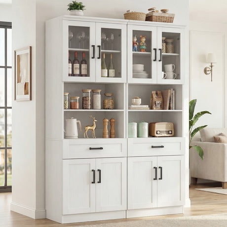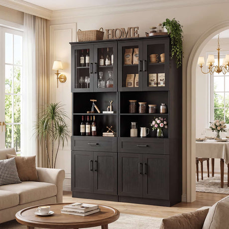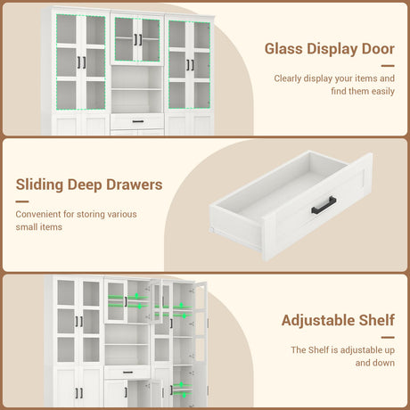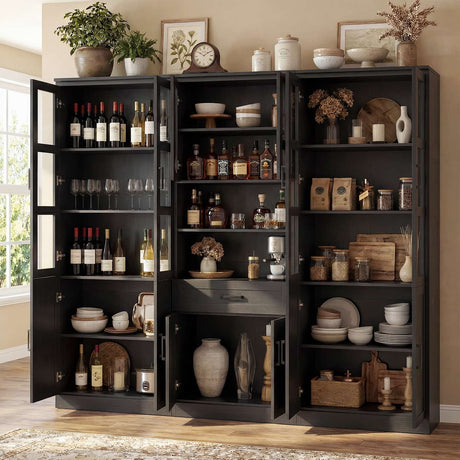 72'' Tall Modern Pantry Cabinet with 2 Drawers and Grid Storage