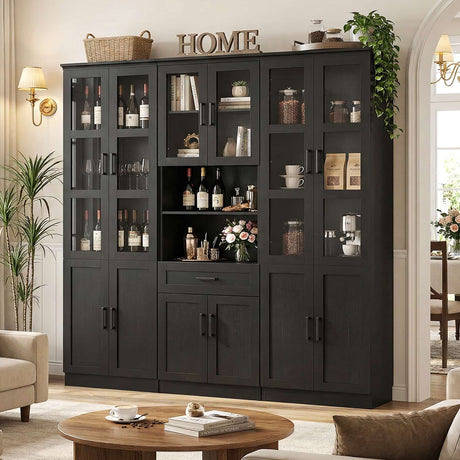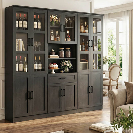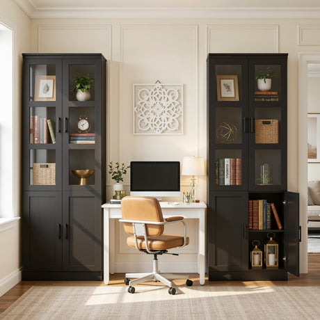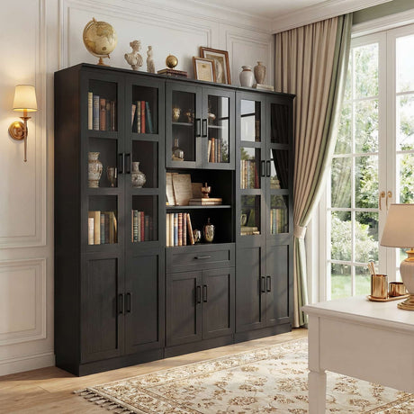 6 Shelf Bookcase with 4 Doors, LED Lights, and Adjustable Shelves