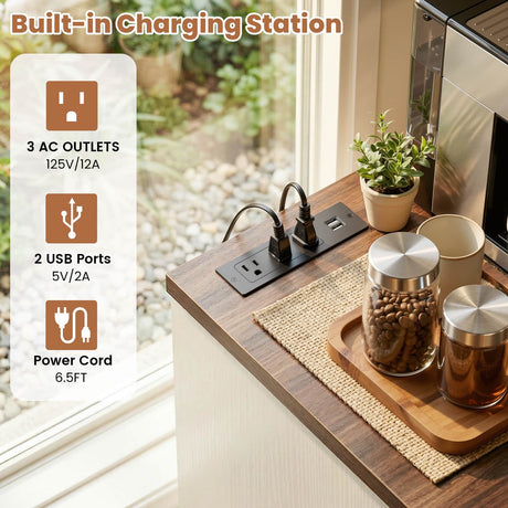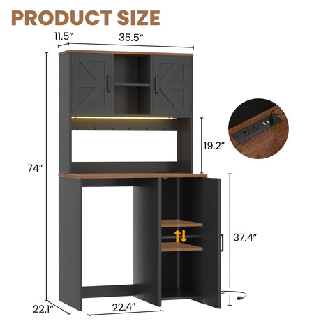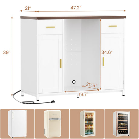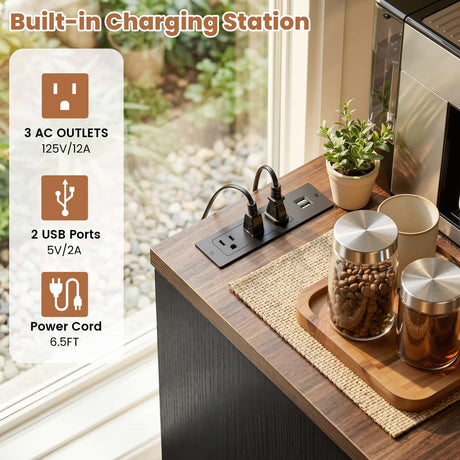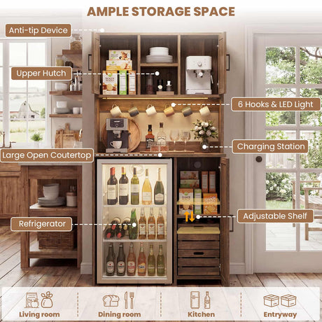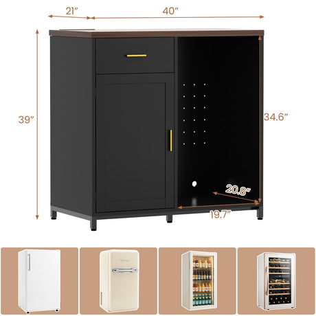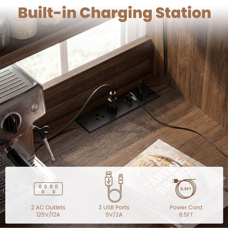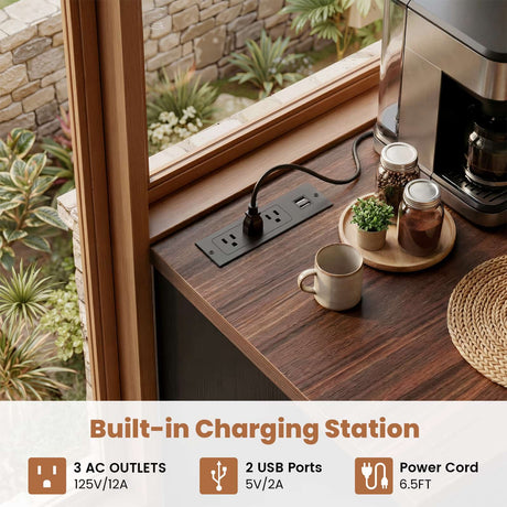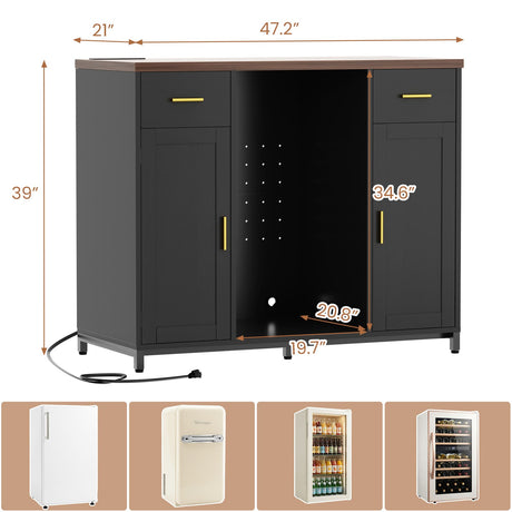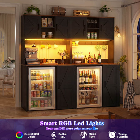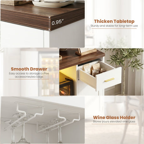 Wine Bar Cabinet with Drawer and LED Light Strip