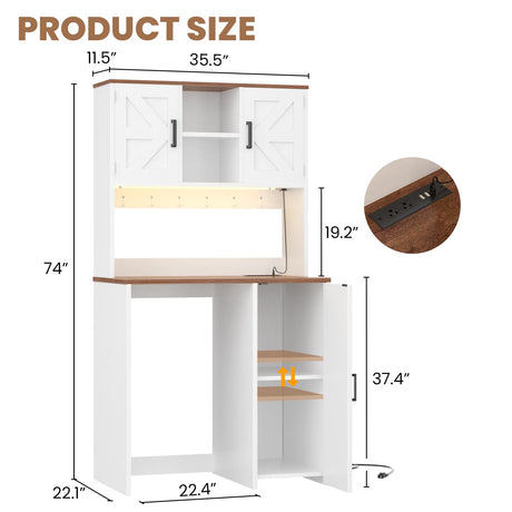 6 Drawer Makeup Vanity Desk with Stool, Lighted Mirror, Built-In Outlets