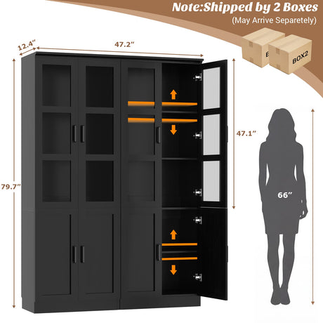 50'' Walk-in Closet System with 2 Sets, Closet Organizer with Hanging Rods & Shoe Racks