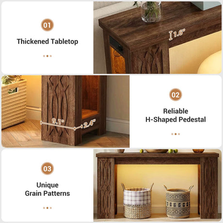 47'' Console Table with Outlets and Sensor Light