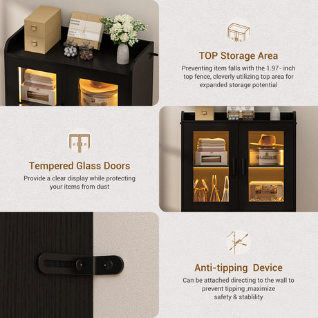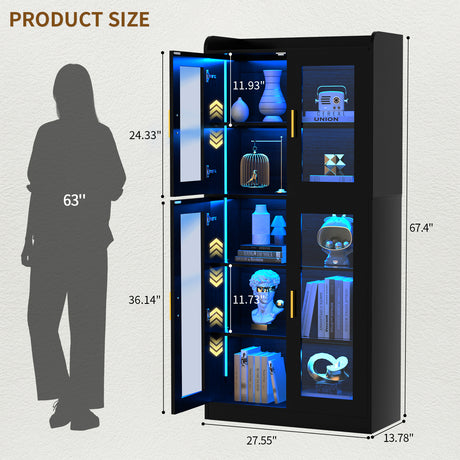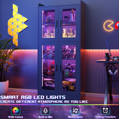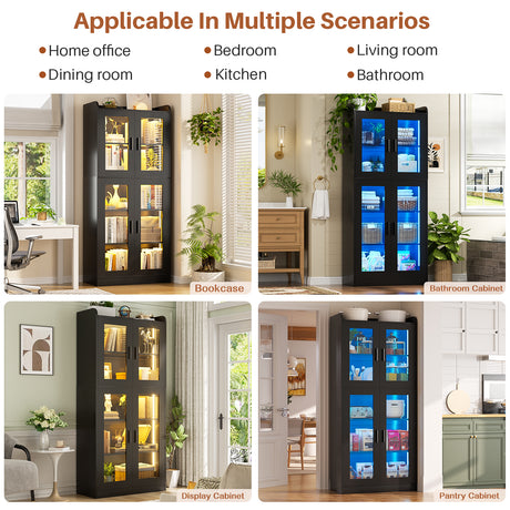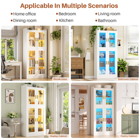6 Shelf Bookcase with 4 Doors, LED Lights, and Adjustable Shelves