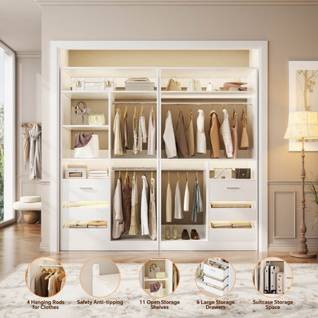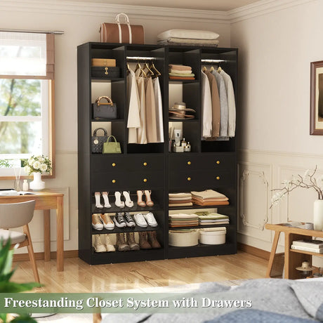 72 inch Walk in Closet Organizer with Drawers, Shelves and Hanging Rods, 2 Packs