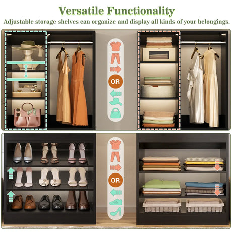 Closet System with 3 Sets, 146'' Closet System with 6 Hanging Rods, Shoe Racks, and Drawer