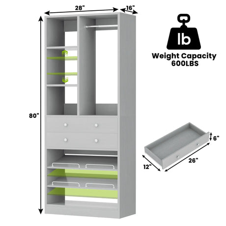 28-Inch Freestanding Closet Organizer with 2 Drawers and Shelves