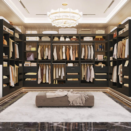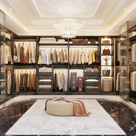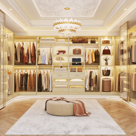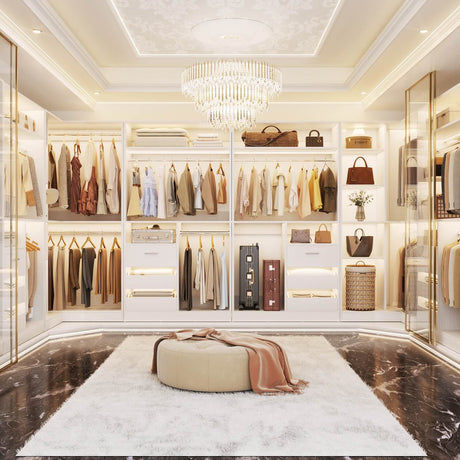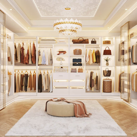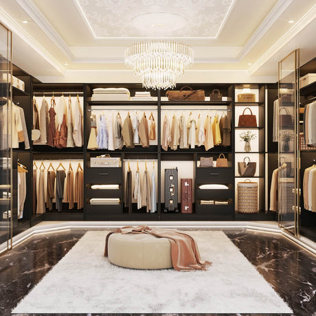 Walk-in Closet Organizer System with Shoe Rack Tower and Corner Closet
