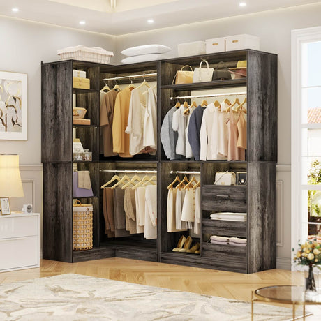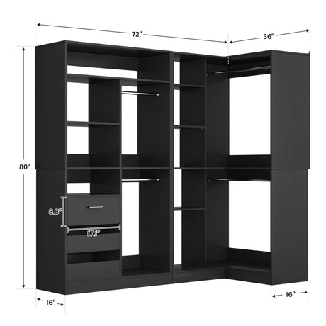 72'' Corner Closet Organizer System with Drawers and Shelves, Heavy Duty