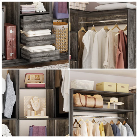 6FT Heavy Duty Corner Closet Organizer System with Drawers, Shelves and Hanging Rods