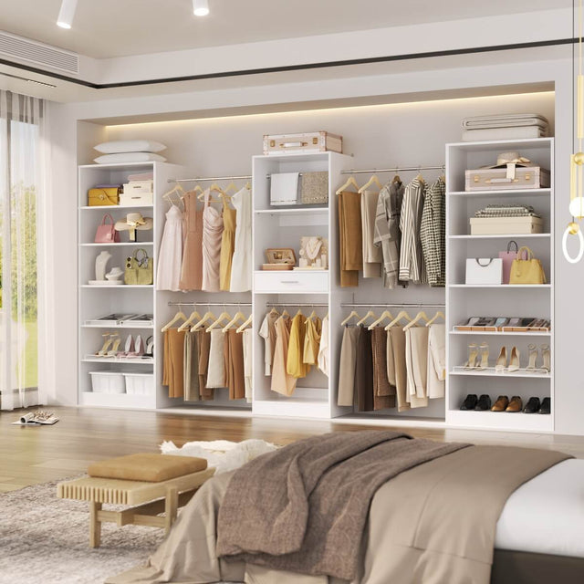 Modern Design with Durable Construction: Crafted from high-quality MDF with a sleek white finish, this closet system delivers both style and strength. A streamlined look fits any décor while holding up under daily use. 2200 lbs capacity.