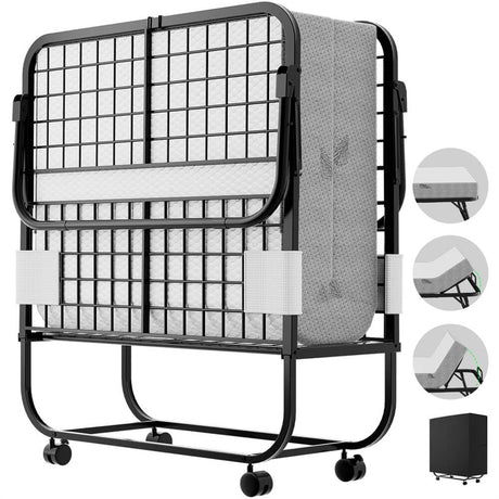 Folding Bed with Mattress for Adults, 75‘’ x 31‘’, with Adjustable Backrest