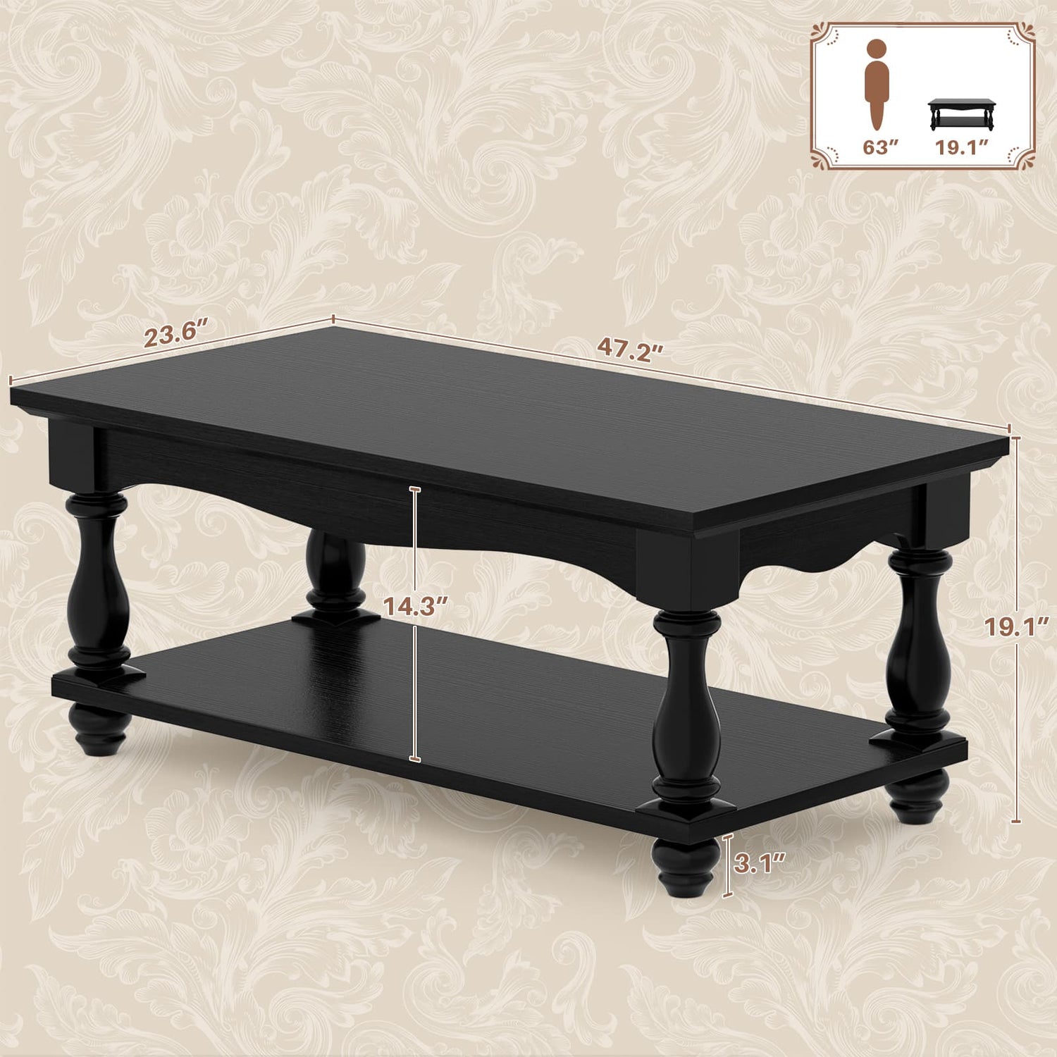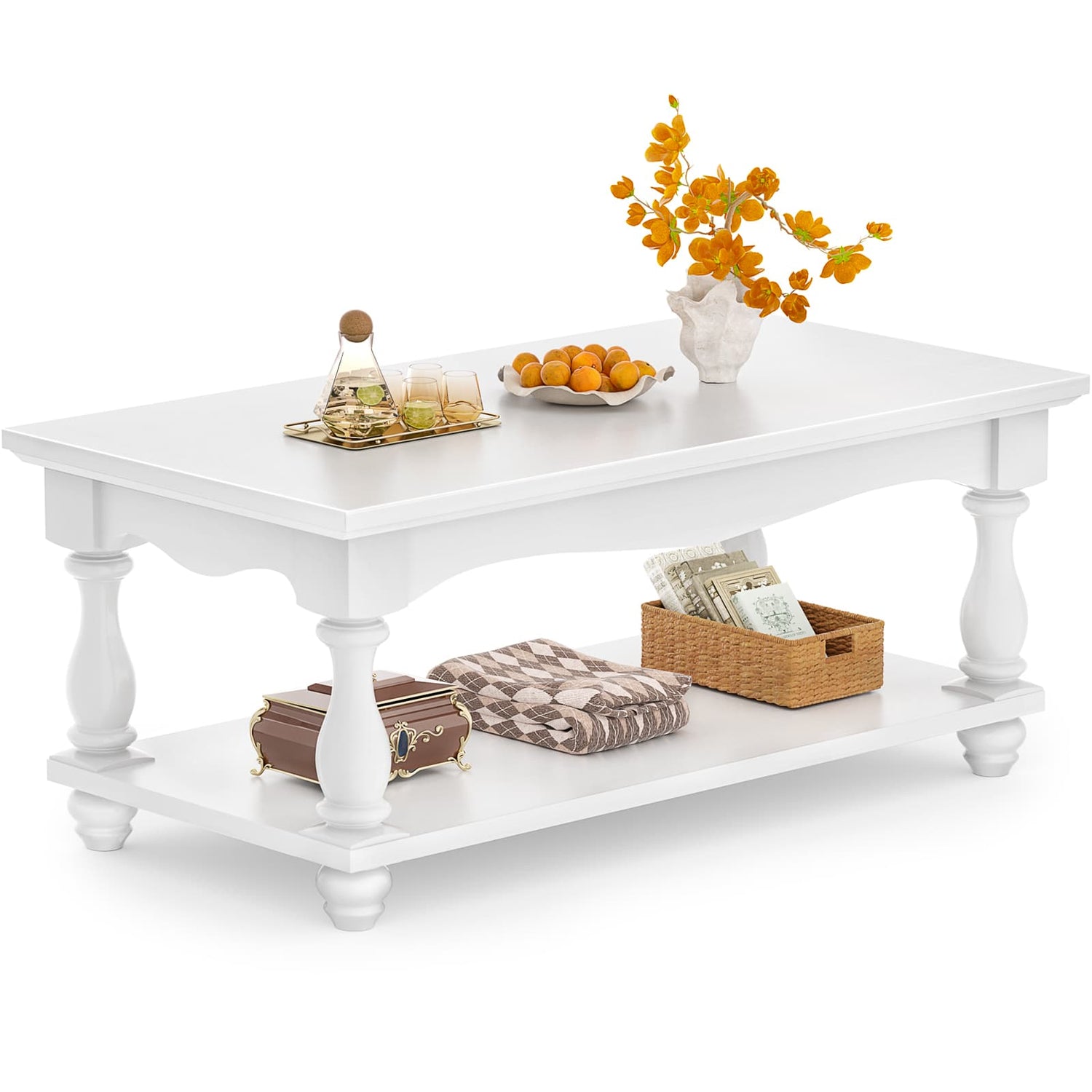 Dual-Level Design: The dual-level design offers additional storage space. The tabletop is ideal for everyday items such as remote controls, fresh flowers, snacks, and magazines. The lower storage compartment is perfect for organizing items like baskets and books.