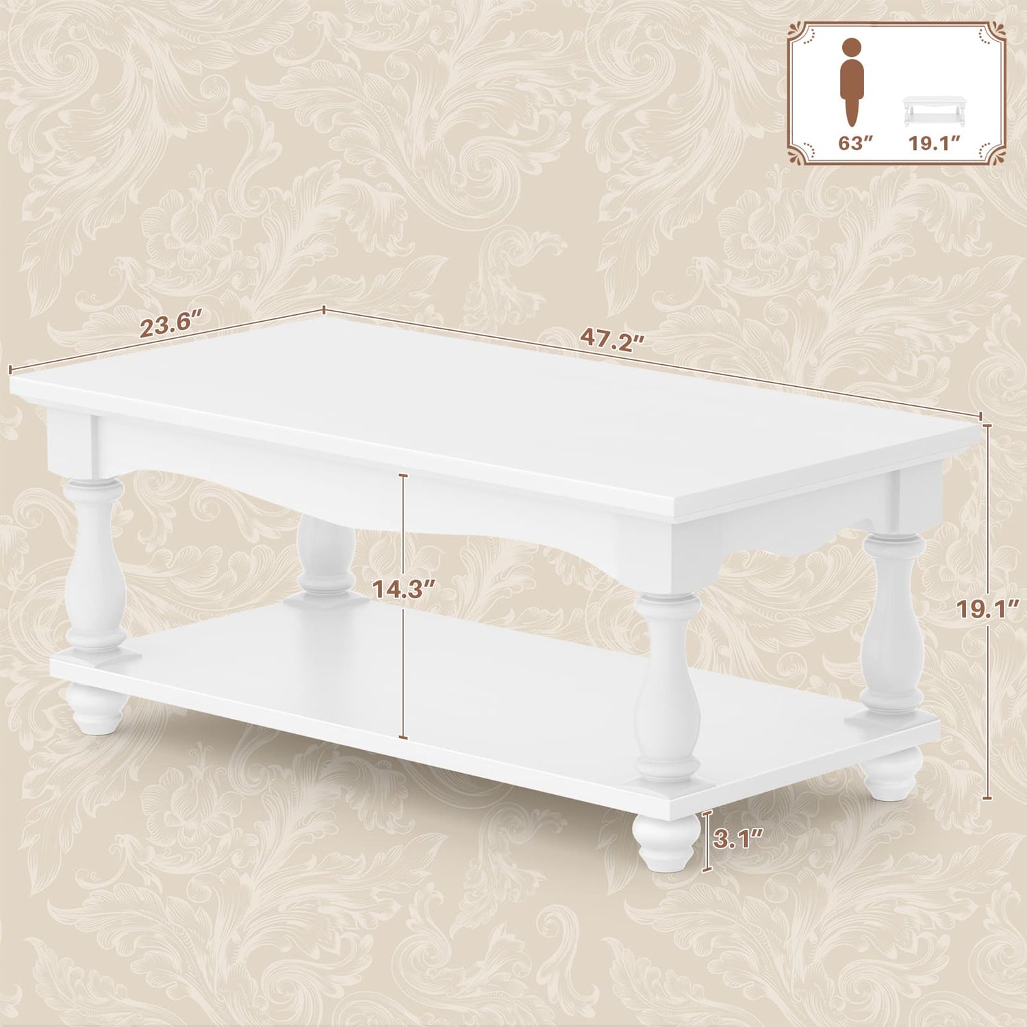 Retro-chic Farmhouse Style: With its wavy silhouette and column-style legs, this coffee table exudes a retro-chic charm. It blends seamlessly into any living room decor.