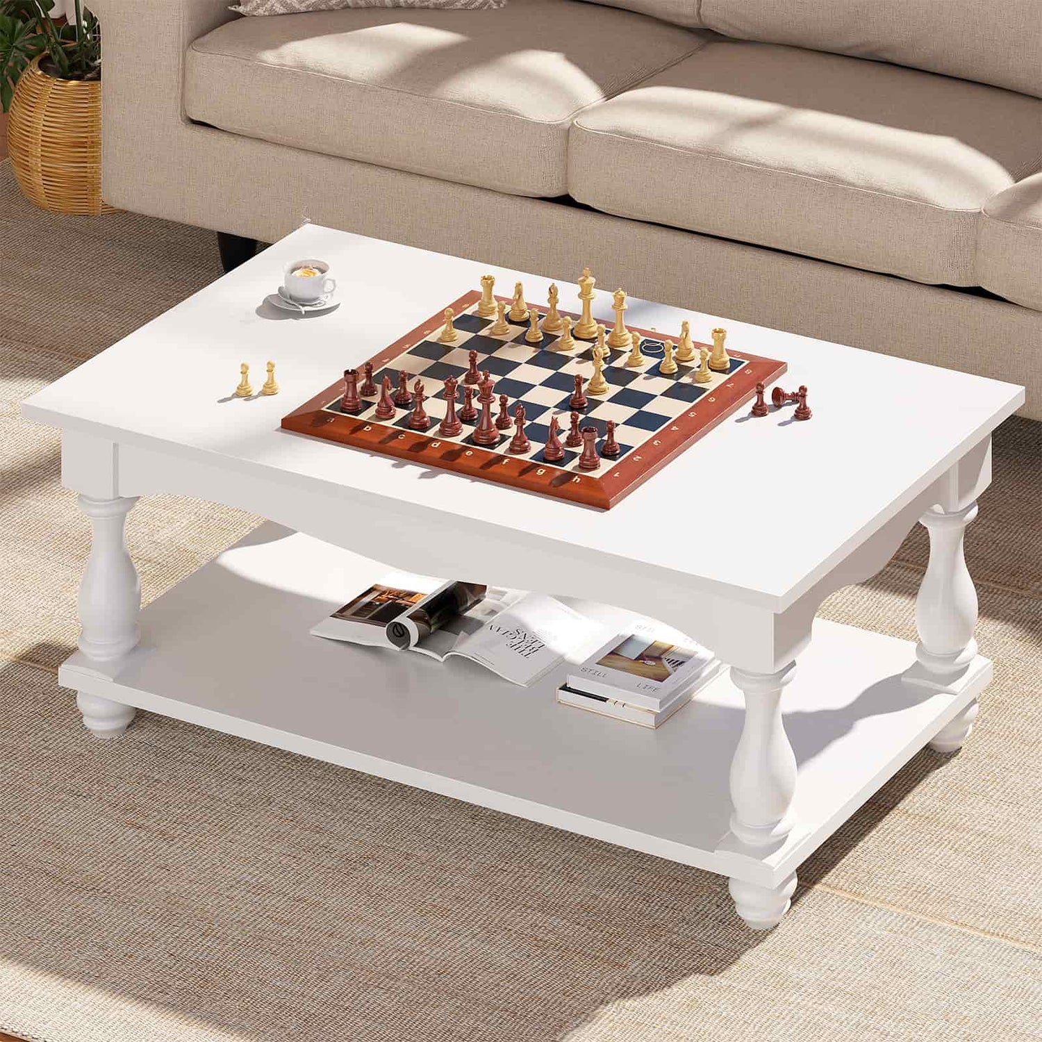 2-Tier Framhouse Coffee Table with Storage