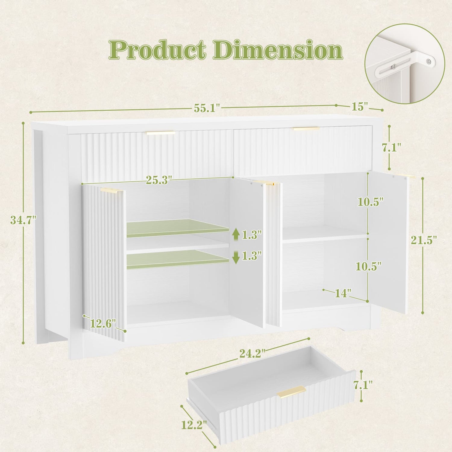 55'' Fluted Sideboard Cabinet with Drawers & Shelves, Modern Buffet Cabinet for Kitchen, Coffee Bar & Entryway Storage