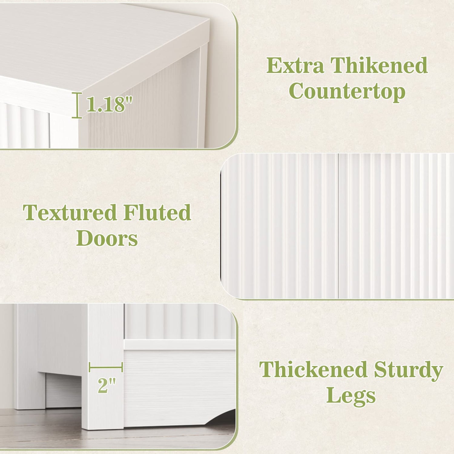 Crafted with durable fluted panels, reinforced solid wood legs, and dual center supports, this cabinet ensures excellent stability and weight distribution. Smooth-gliding drawers enhance everyday usability.