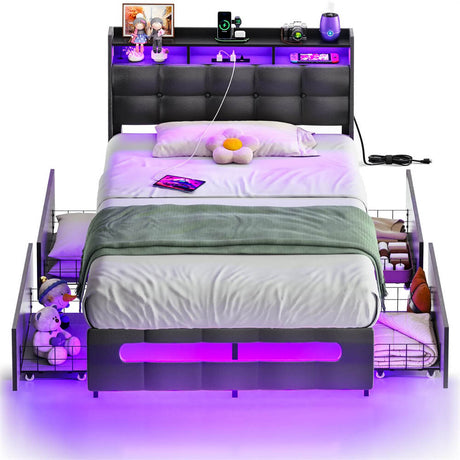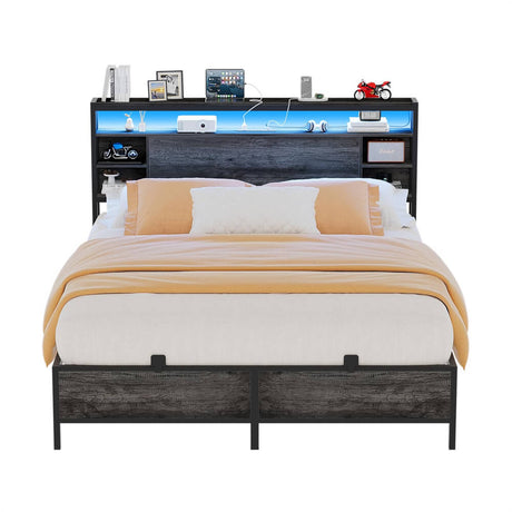 Sale price $176.99 Regular price $268.99Unit price /UnavailableTwin Size Bed Frame with Storage Headboard, Platform Bed Frame with LED Lights and Power Outlets