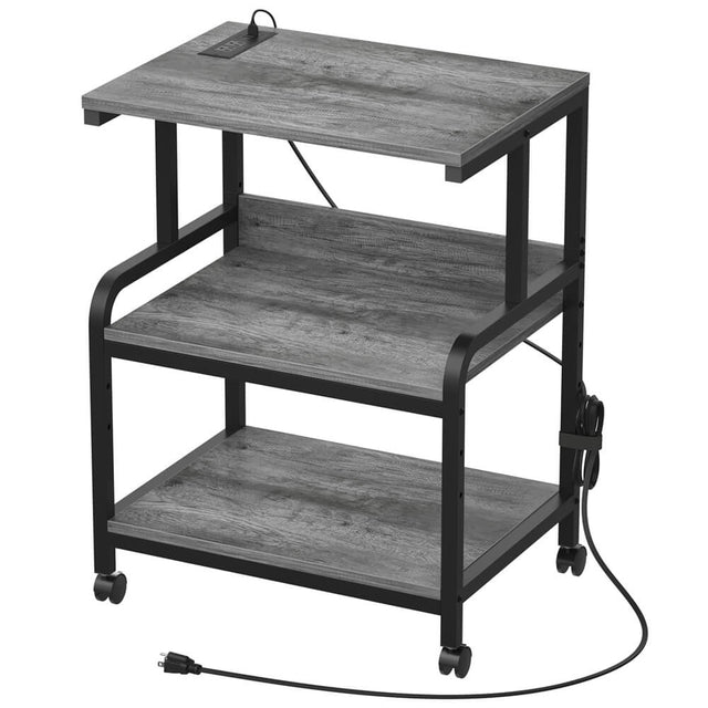 3-Tier Printer Stand on Wheels, with Power Outlets, Removable