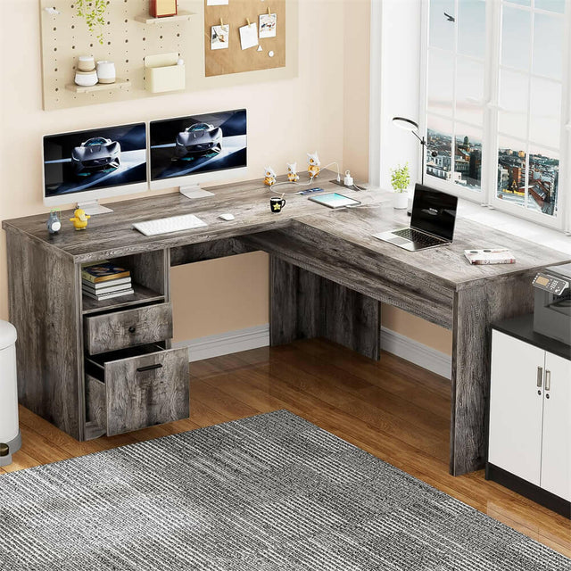 Unikito Large Sturdy L Shaped Office Desk with Drawers