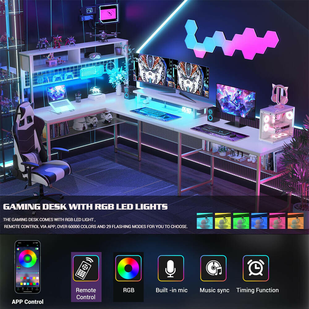The corner desk features a multifunctional hutch, grid ubder bookshelf and two layer adjustable shelves with roomy compartments to offer large storage space for books, artworks, magazines, office essentials and hosts, so that your desk is not cluttered with office supplies. The over shelves that are ideal for work-in-progress and frequently used items.